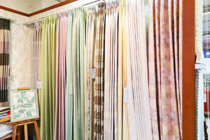 数量限定のアウトレットカーテンなど、お買い得商品を多数取り揃えている。無料でご自宅まで伺う、出張採寸サービスもその場で申し込み可能。