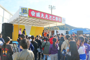 司会に松本裕見子さんを迎え、ステージを中心に物販・飲食・体験が楽しめる。カキや地酒など呉の特産品も大集結。親子向けブースもあるので家族揃って出かけよう。